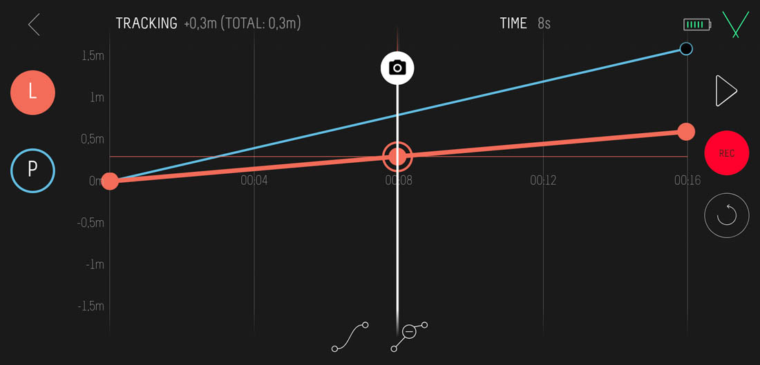 La nostra scelta ricadrà su questa modalità quando vorremo comandare in diretta il sistema motorizzato, muovendo a proprio piacere l’inquadratura. Avremo a disposizione due “joystick” uno che permetterà il movimento lungo lo slider mentre il secondo per quello di pan/ tilt.