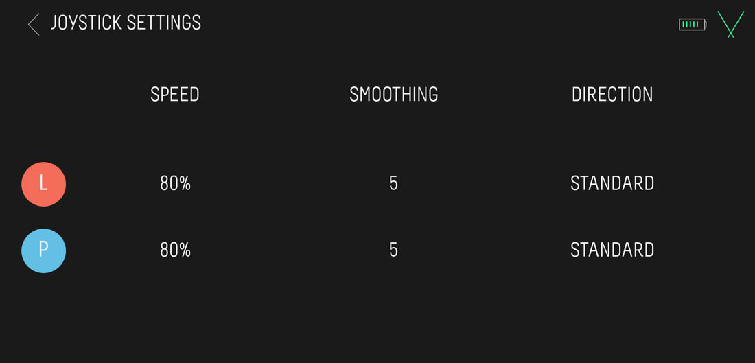 - DIRECTION: permette di invertire la direzione in cui avviene lo spostamento rispetto al joystick presente nella schermata principale.