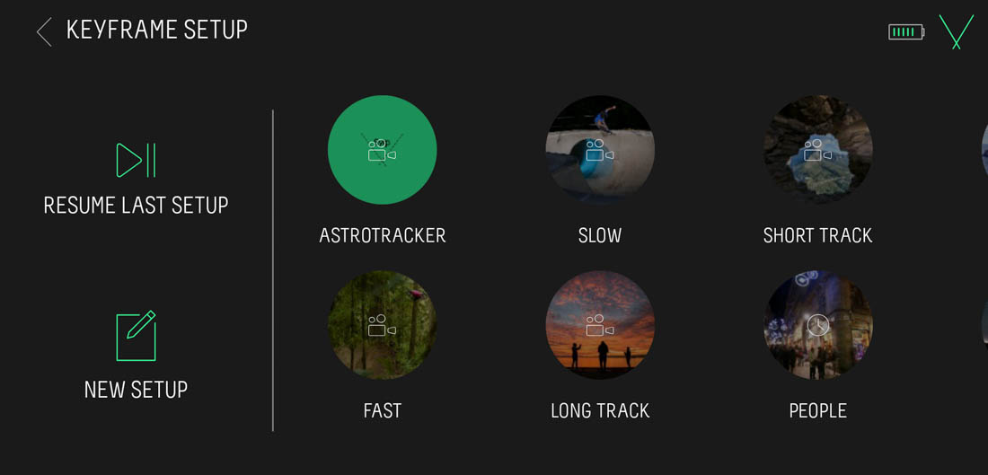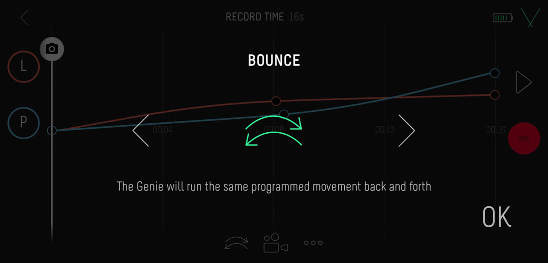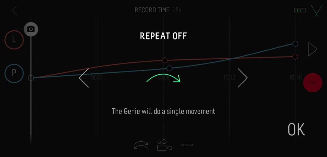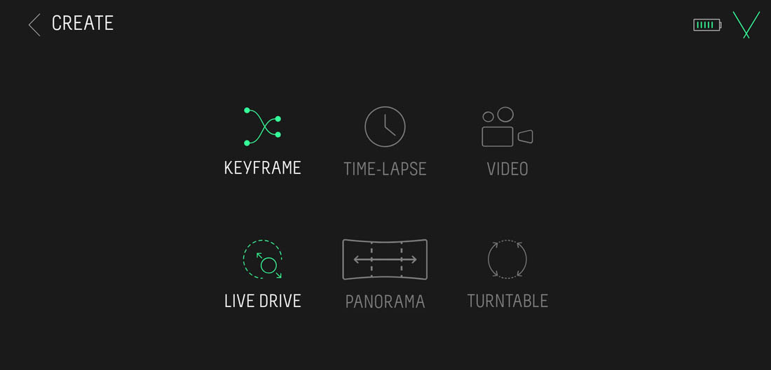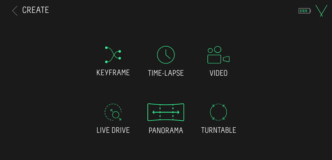 Infatti, per programmare un Time-lapse o un Video dovremo passare per forza attraverso il pannello Keyframe, mentre, le modalità panorama e Turntable saranno disponibili solo se avremo collegato il Genie Mini 2.