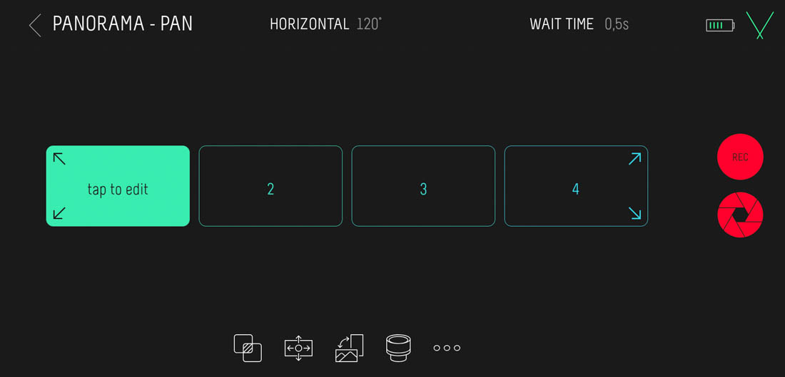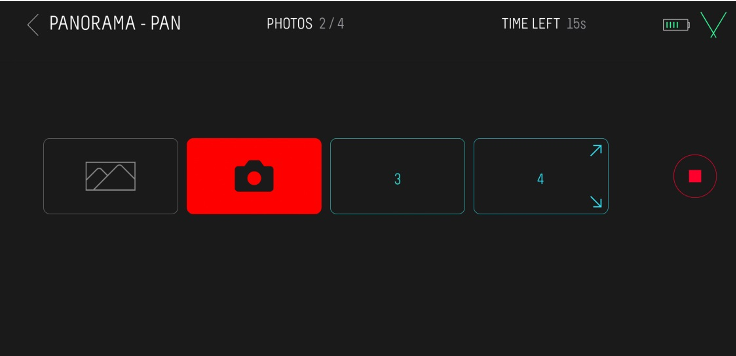A questo punto, possiamo far partire l’esecuzione della panoramica attraverso l’icona rossa che è presente sulla destra della schermata. Vorrei precisare che il sistema permette di realizzare una serie di scatti che dovranno poi essere uniti in post-produzione per ottenere la panoramica.